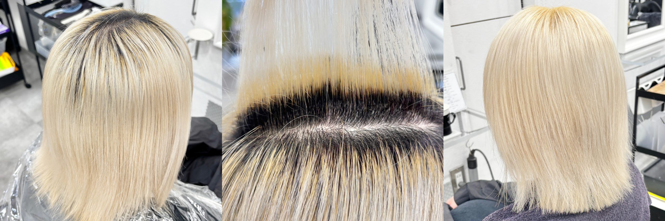 ホワイトヘアや黄色味の少ないブロンドを維持していく場合、一般的にはフォイルやコットンを使用したリタッチを1~2カ月周期でする必要があります。